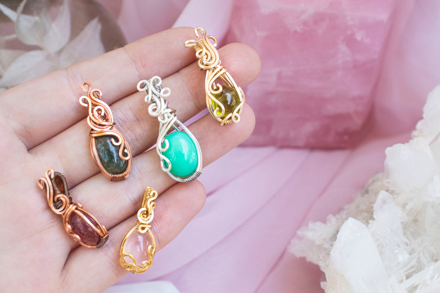 I built my business doing something I love, creating beautiful pieces of jewelry made with some magical crystals. From hand selecting these gorgeous crystals, to choosing the wire color and wrap style, each piece is designed to be one of a kind, and bring an extra spark of magic to your life.