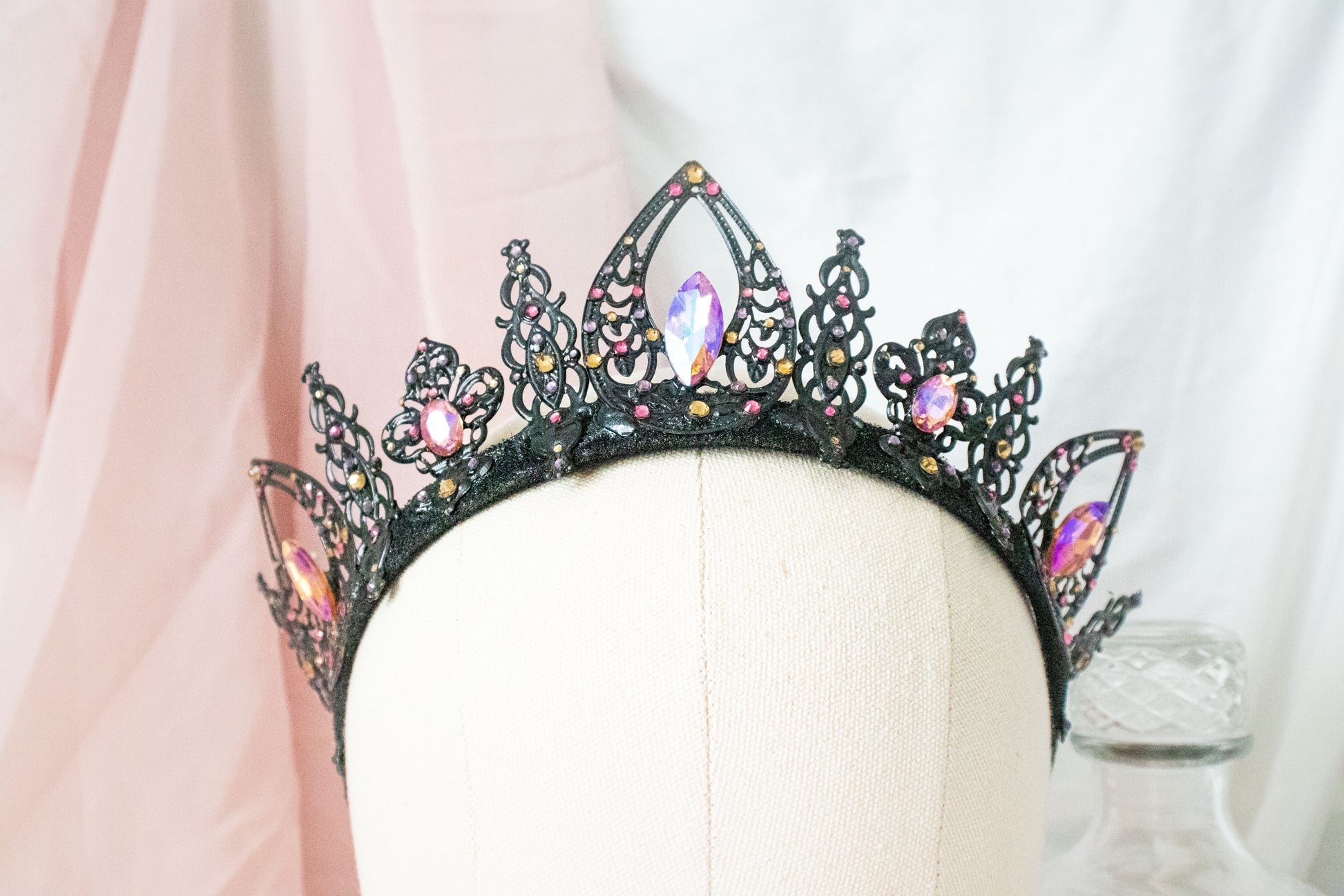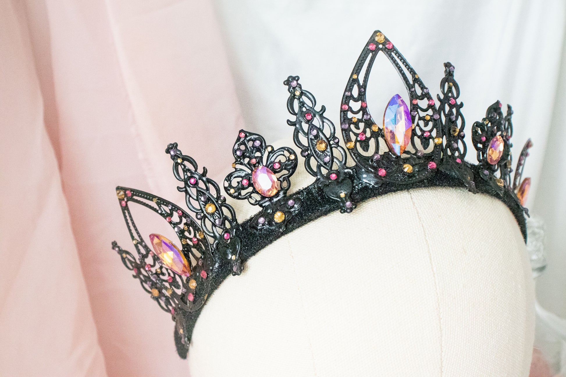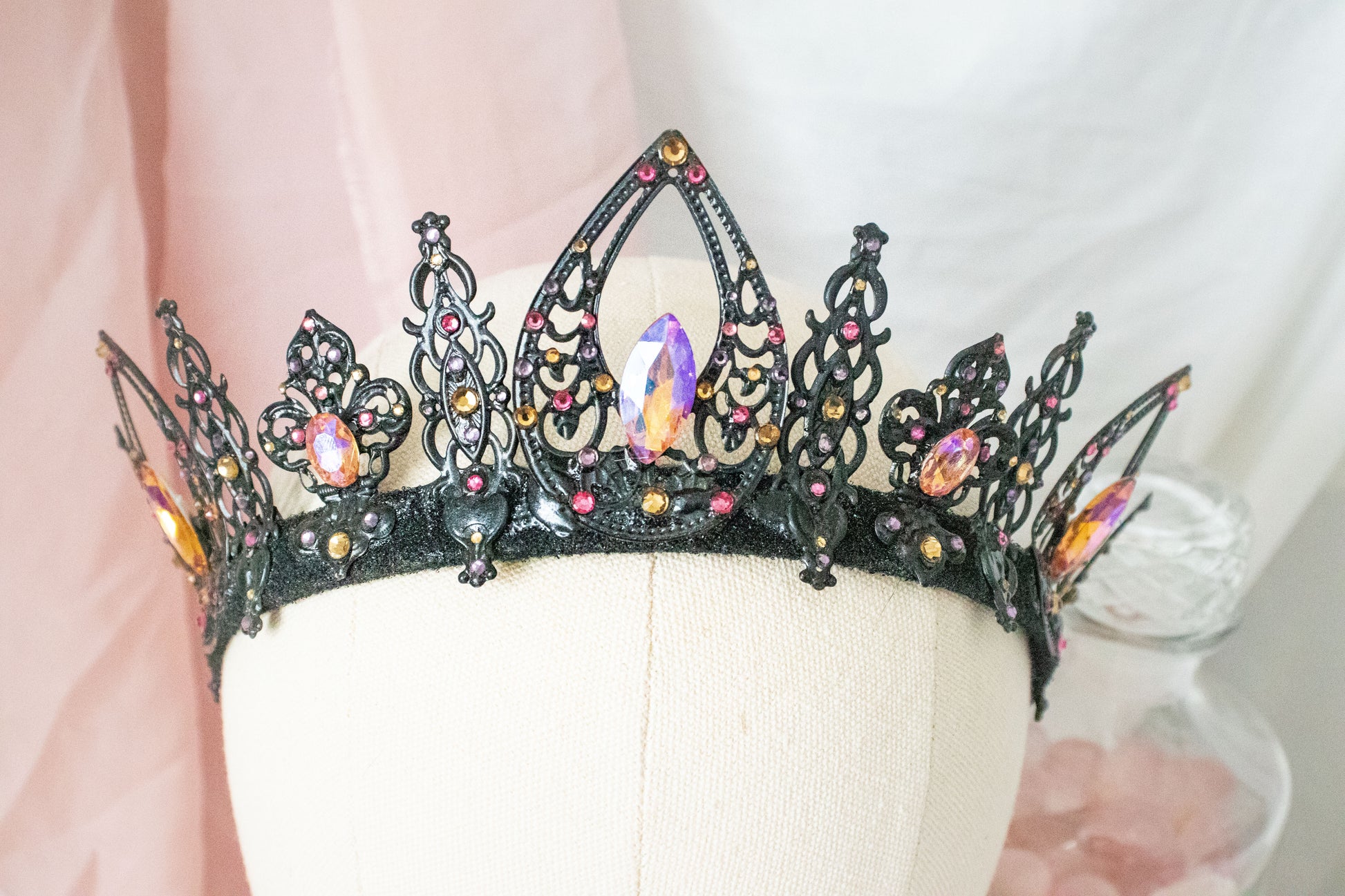 Our black + sunset large crown is all about extravagance, designed to be a true statement piece. Ideal for anyone seeking a bold, unforgettable look, each crown is handcrafted with intricate details that make it one of a kind. With a flexible yet secure fit, this crown lets you shine as bright as your inner magic.