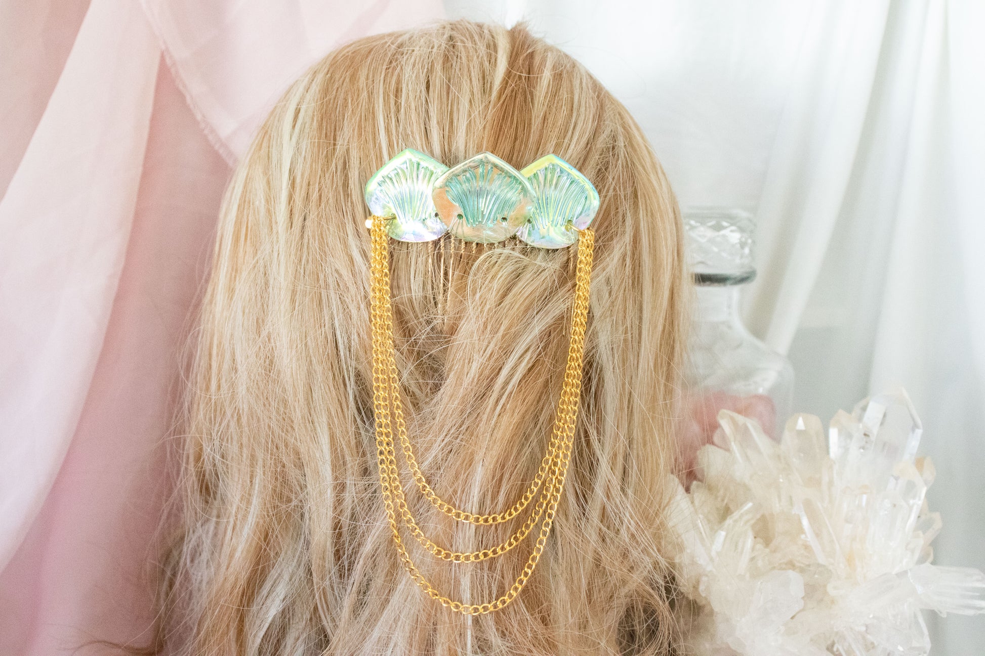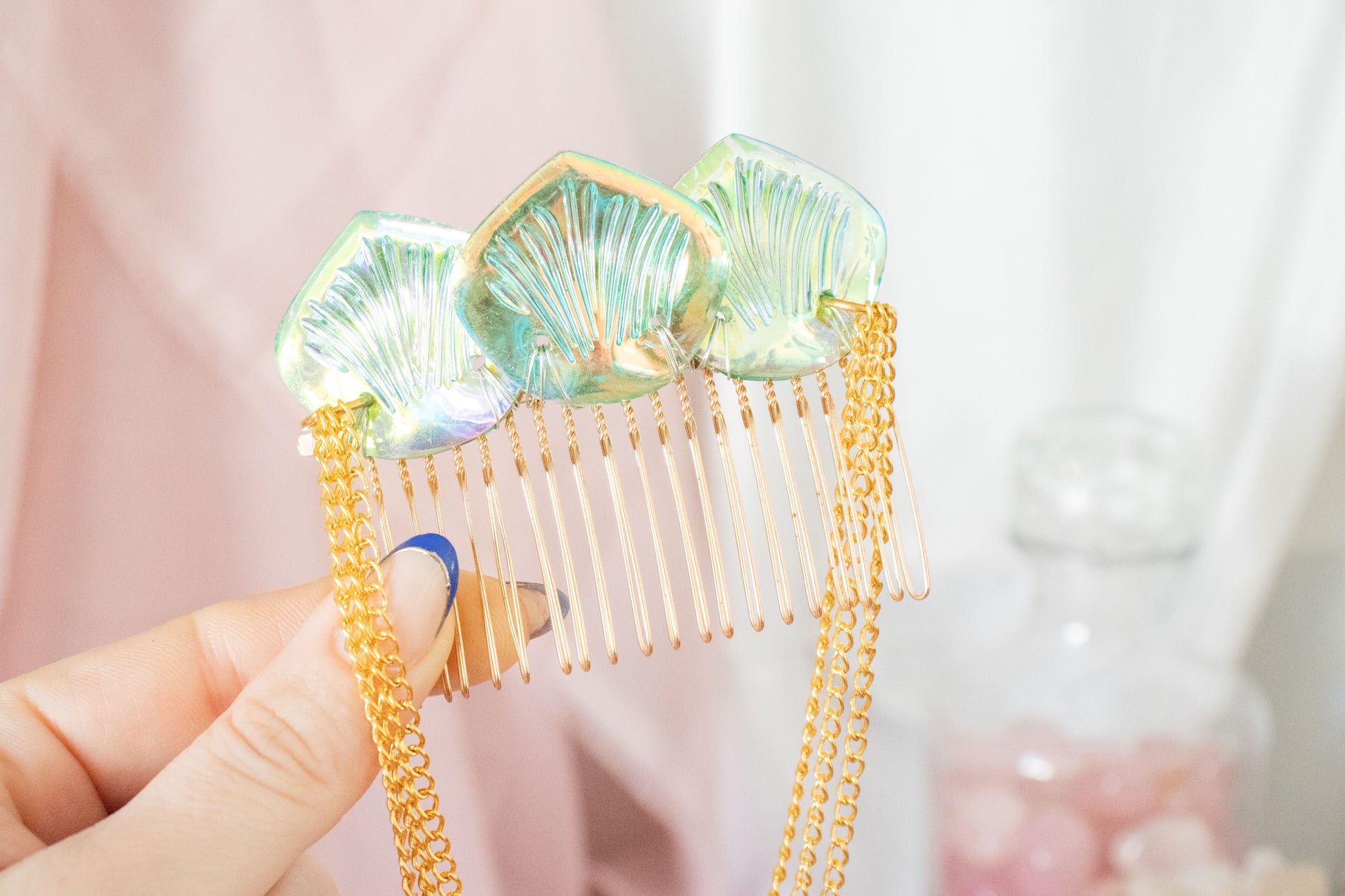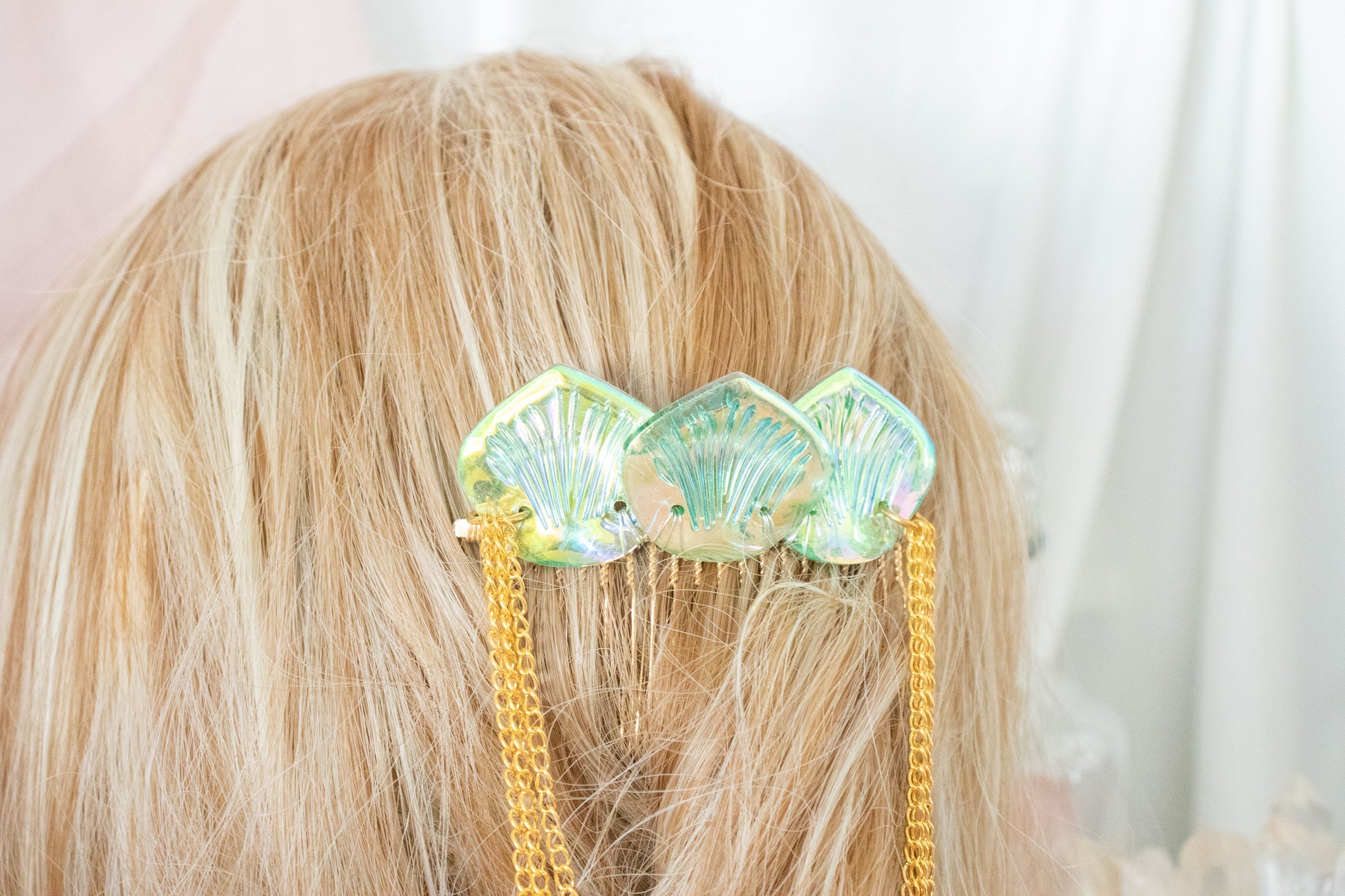Comb features gold chain and green mermaid scales.