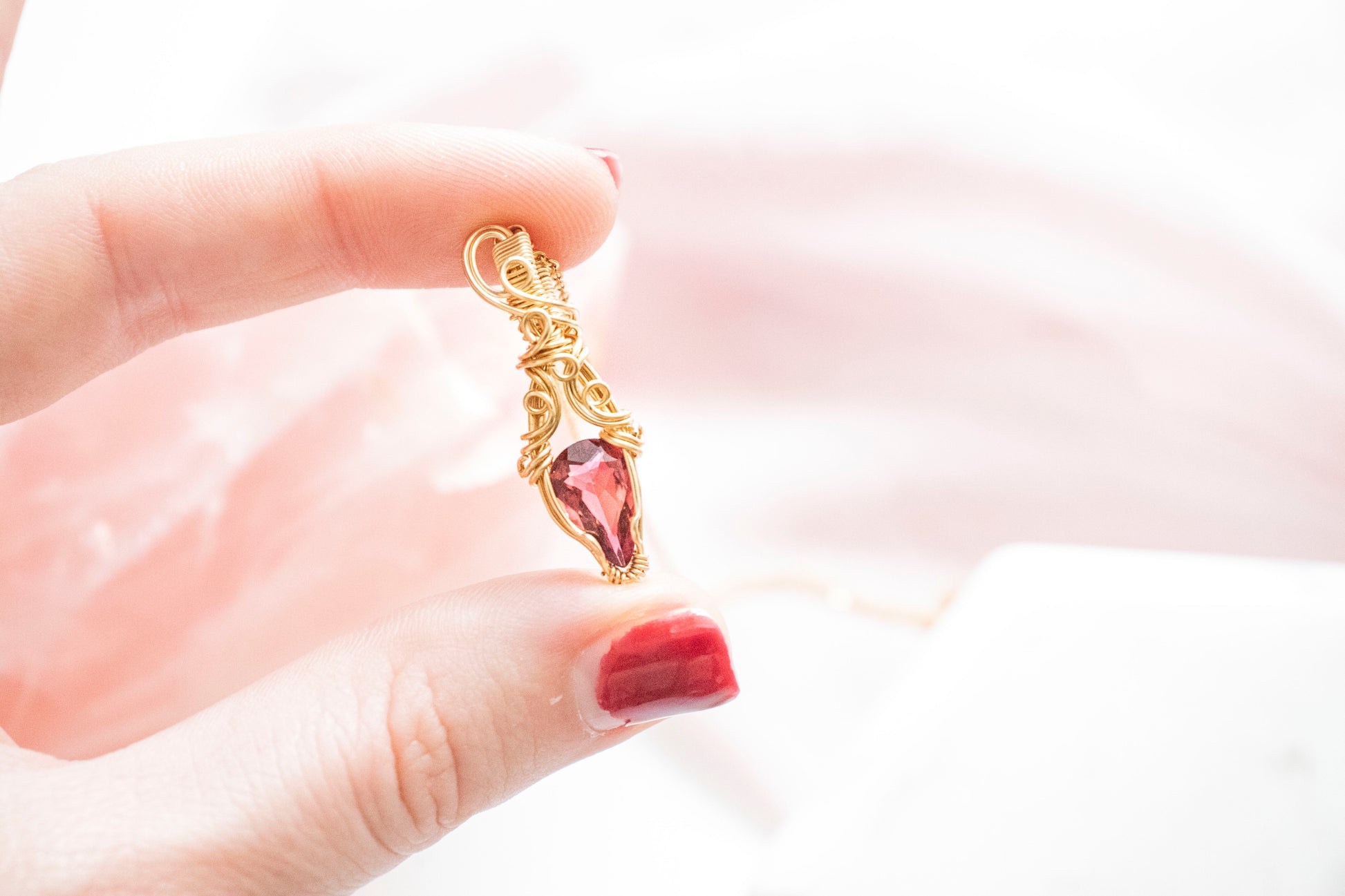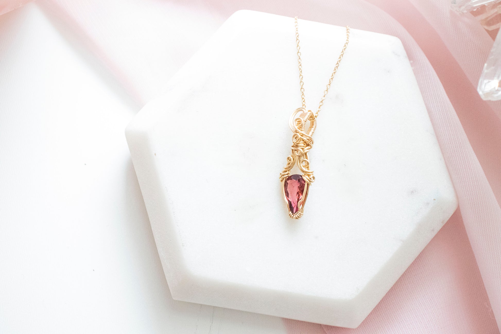 Ianthe PinkTourmaline Pendant (14k Gold Fill)