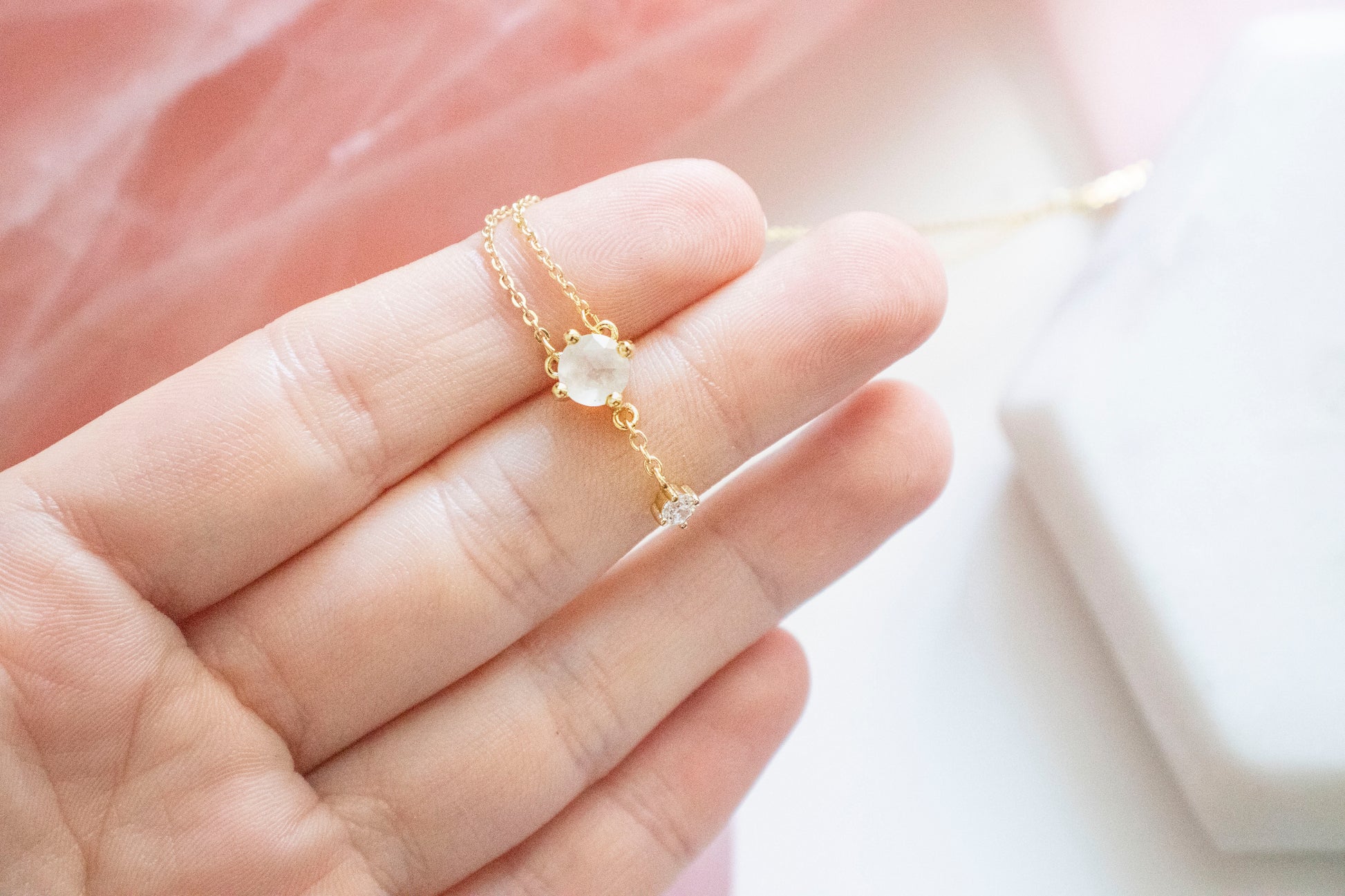 Mia Moonstone Lariat Necklace (14k Gold Plated)