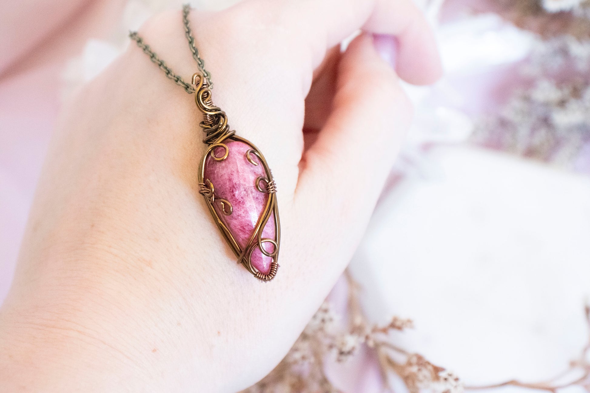 Pendants are made of raw copper or are copper-coated. Gold and silver colored jewelry are made with silver-plated wire.
