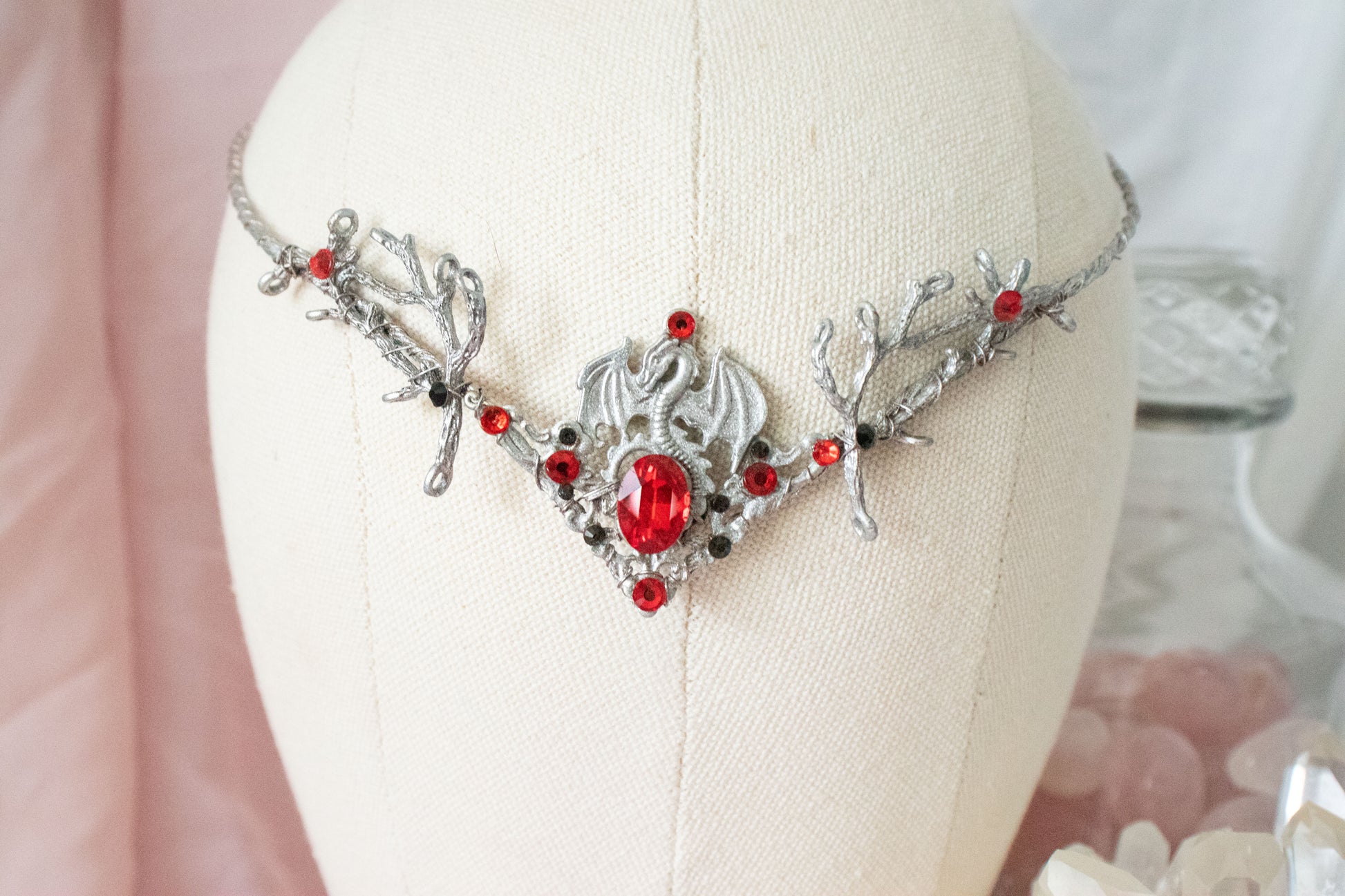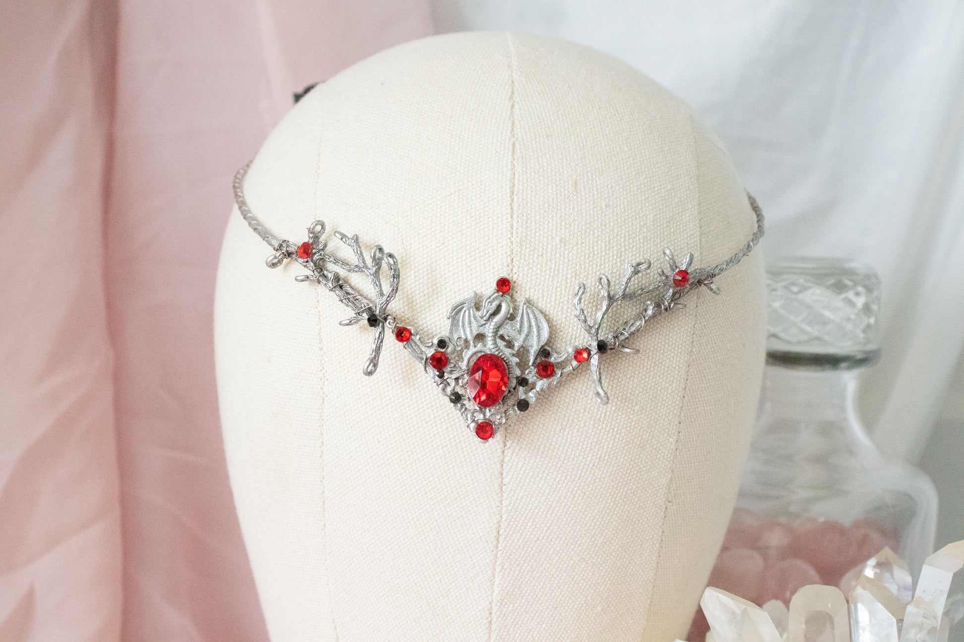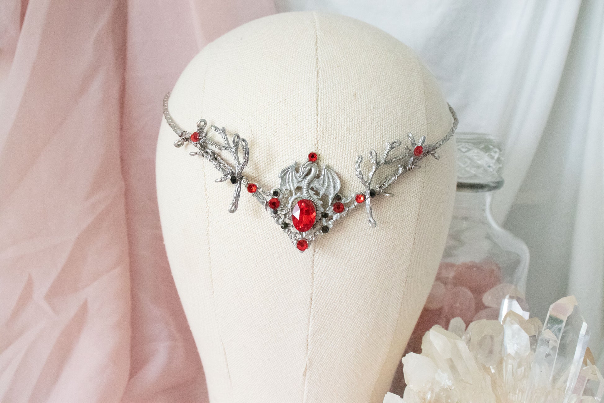 Embrace an elven-inspired elegance with our silver + red dragon circlet tiara, designed to sit gracefully on the forehead. Each circlet is handcrafted with intricate detail to bring a mystical charm that elevates any outfit. Flexible and lightweight, it comfortably molds to your head, giving you the timeless beauty of fantasy realms with a real-world touch.