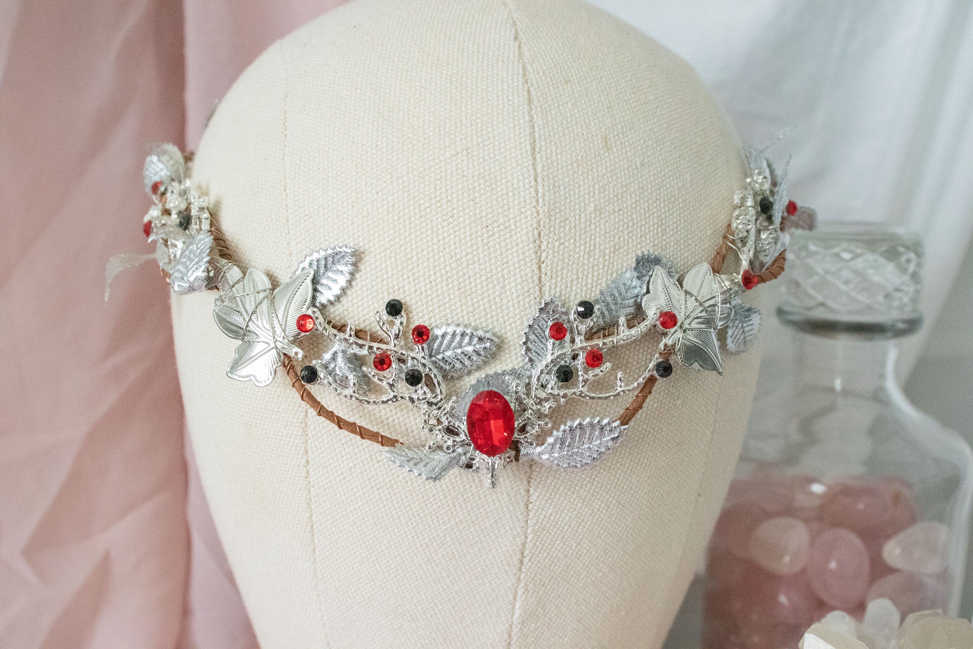 Embrace an elven-inspired elegance with our silver + red stag circlet tiara, designed to sit gracefully on the forehead. Each circlet is handcrafted with intricate detail to bring a mystical charm that elevates any outfit. Flexible and lightweight, it comfortably molds to your head, giving you the timeless beauty of fantasy realms with a real-world touch.