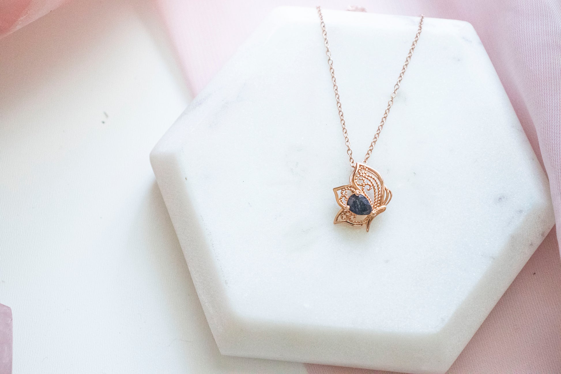 Thetis Sapphire Butterfly Pendant (14k Rose Gold Fill)